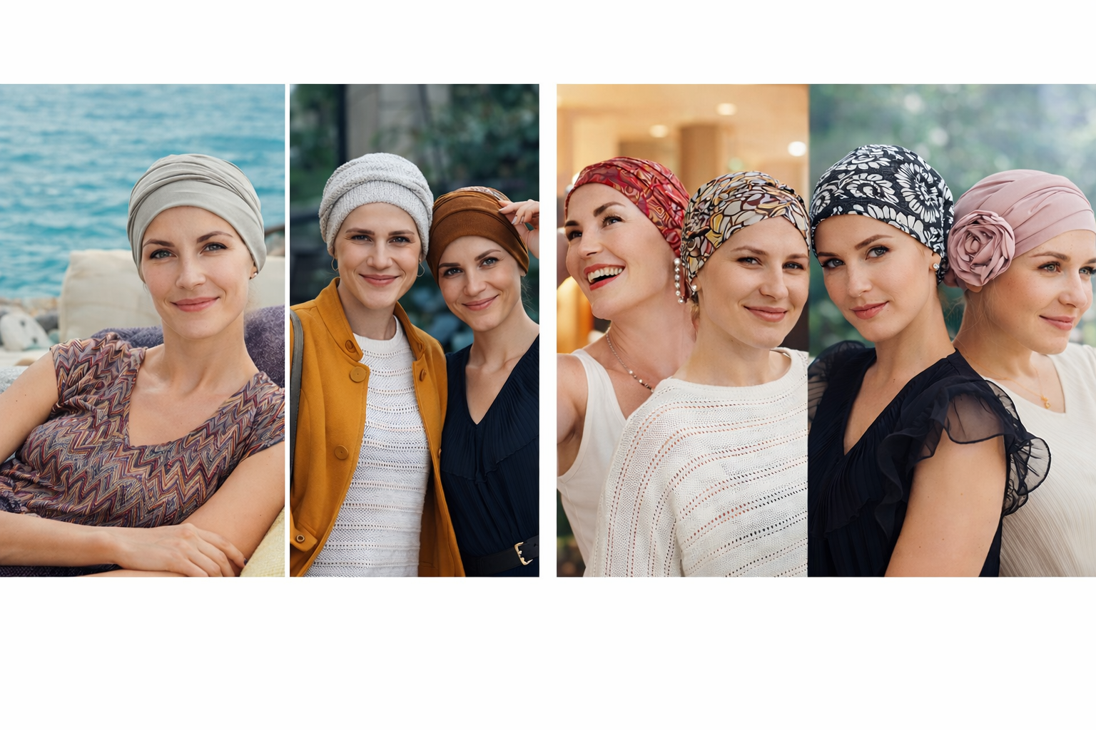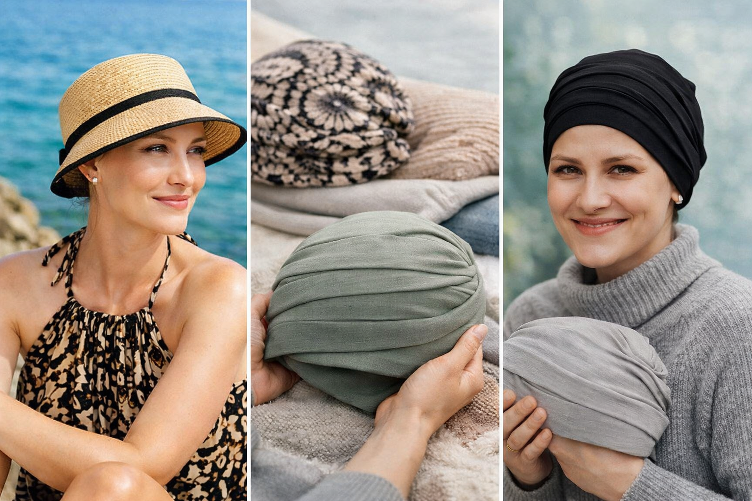 Prémiové turbany, čiapky a klobúky pre ženy, mužov aj deti počas onkologickej liečby. Jemné k citlivej pokožke, pohodlné bez tlačenia. Funkčné na každé ročné obdobie – priedušné v lete, hrejivé v zime.