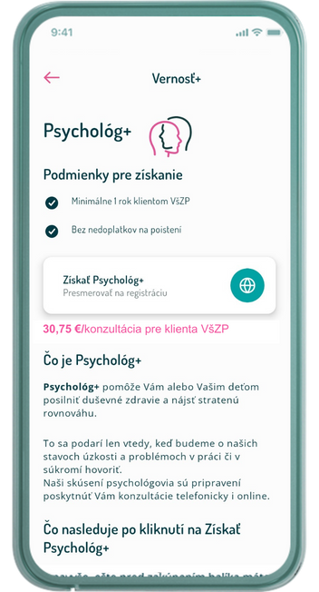 - rýchly prístup k objednaniu psychológa, priamo z mobilnej aplikácie VšZP, ktorá vás presmeruje na stránku partnera Psychológ pomáha.